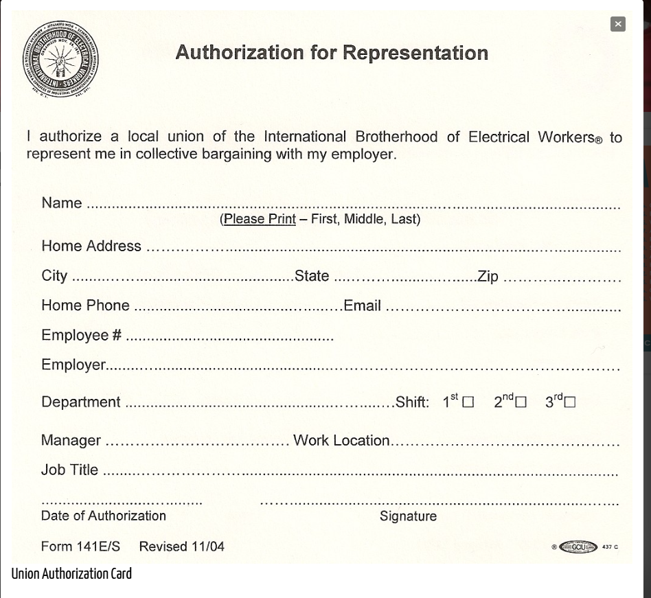 UNION AUTHORIZATION CARD